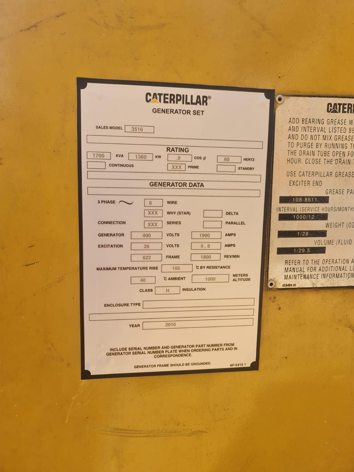 Caterpillar 3516 Diesel Generator 1700 kVA 60Hz – Year 2010